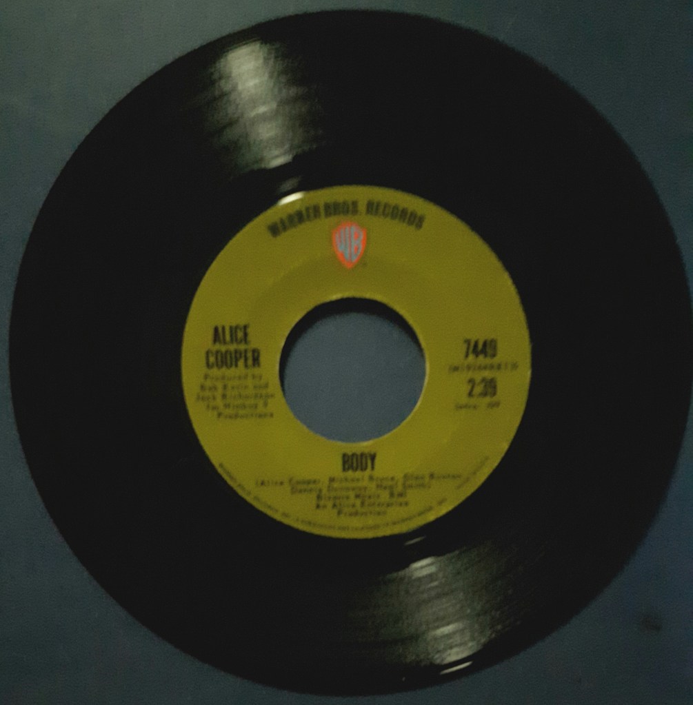And although that would be the album’s only major hit single, it put the band in the album charts where it made the Top 40 in Canada, the USA, and the UK. As well Alice Cooper were on their way to become one of the biggest Hard-rock acts of the 70s, along with tales of their stage theatrics – they’d become huge, featuring in the major music magazines, and newspapers wherever they played. The album’s first track “Caught In A Dream” [penned by Michael Bruce] was issued as the next single, but just broke the Top 100 in the US. This is my favorite song on the album, and some of Alice’s best lyrics – “You know I need a houseboat and I need a plane / I need a butler and a trip to Spain / I need everything The world owes me / I tell that to myself And I agree” . The B-side to “I’m Eighteen” was “Is It My Body”, another fan favorite, and [like “18”] was also co-written by the entire band.