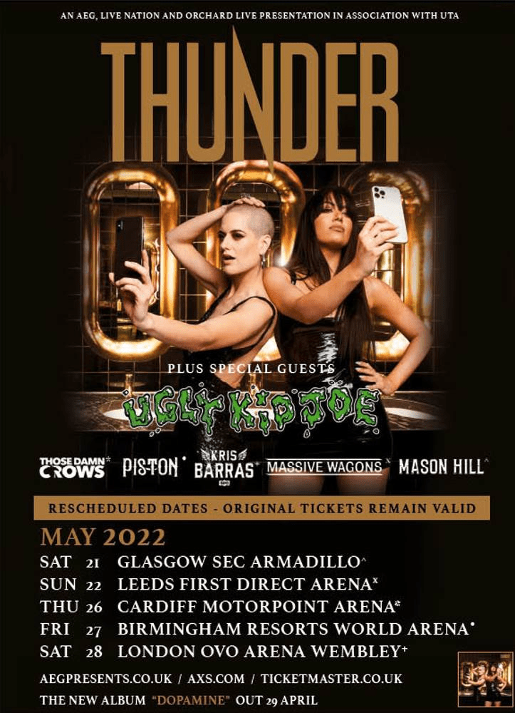 Thunder will also embark upon a UK arena tour in May 2022, including a date at London’s OVO Arena Wembley.