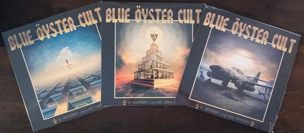 The extra material, beyond the album being played in full, offers up a few gems, and a few repeats night to night (the ‘must play’ hits, and a couple from the band’s last new recording – The Symbol Remains. But there plenty of welcomed inclusions for big BOC fans, with Third Night Live including favorites – “Black Blade” (from Cultosaurus Erectus), “Shooting Shark” (from Revolution By Night), “I Love The Night” (Spectres), and “Joan Crawford” (Fire Of Unknown Origin). It also includes “The Alchemist”, from The Symbol Remains, actually performed the previous night, but held over to be included here. A couple of other Symbol Remains cuts might’ve been cool, with 2 more of the same here that featured on the First Night, but oh well. This whole set is damn near perfect, from the added song choices, performances, recordings, and packaging, making these 3 releases ‘must haves’ for BOC fans.